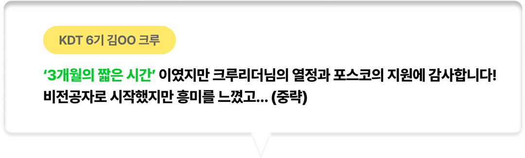 비전공자라 하더라도 6개월간 밀도 높은 교육과 꾸준한 복습과 예습을 병행하여 오히려 전공자의 실력을 따라잡기도 합니다.
